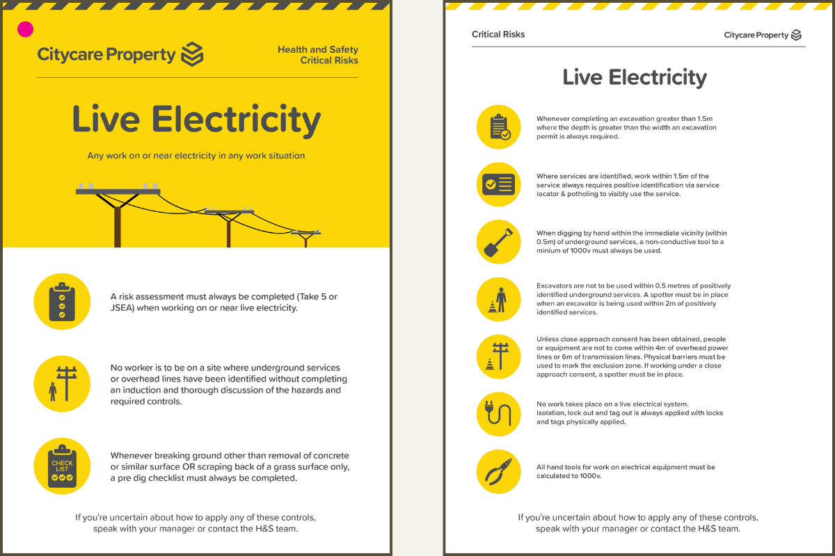 The following are the expected controls within our critical risk work that you need to apply all the time, every time when working on live electricity.